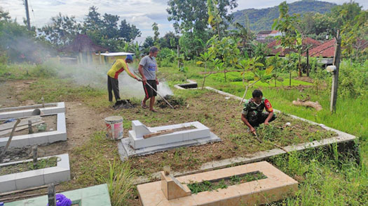 Sasaran kerja bakti kali ini adalah pembersihan semak, rumput dan sampah di area pemakaman.