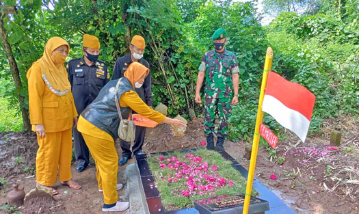 Danramil Tipe B 0804/01 Magetan Kapten Caj Jemani selaku Isnpektur Upacara, memancang bambu runcing yang diberi bendera merah putih pada ujung bambu runcing tersebut di atas makam almarhum Soeroi.