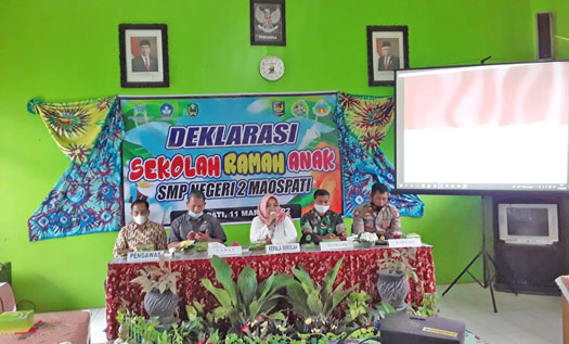 Magetan – Danramil 06 Maospati Kapten Inf Sunaryo Kodim 0804/Magetan menghadiri kegiatan Deklarasi sekolah ramah anak bertempat di SMPN 2 Maospati,Jumat (11/3/2022)