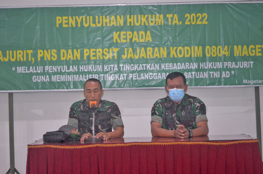 Dalam sambutanya Dandim 0804/Magetan yang diwakili Kapten Arm Suyatmin mengatakan kedatangan Tim penyuluhan hukum ke Kodim 0804/Magetan ini merupakan suatu kehormatan. Kapten Arm Suyatmin juga mengucapkan selamat datang kepada tim penyuluhan hukum di Makodim 0804/Magetan.