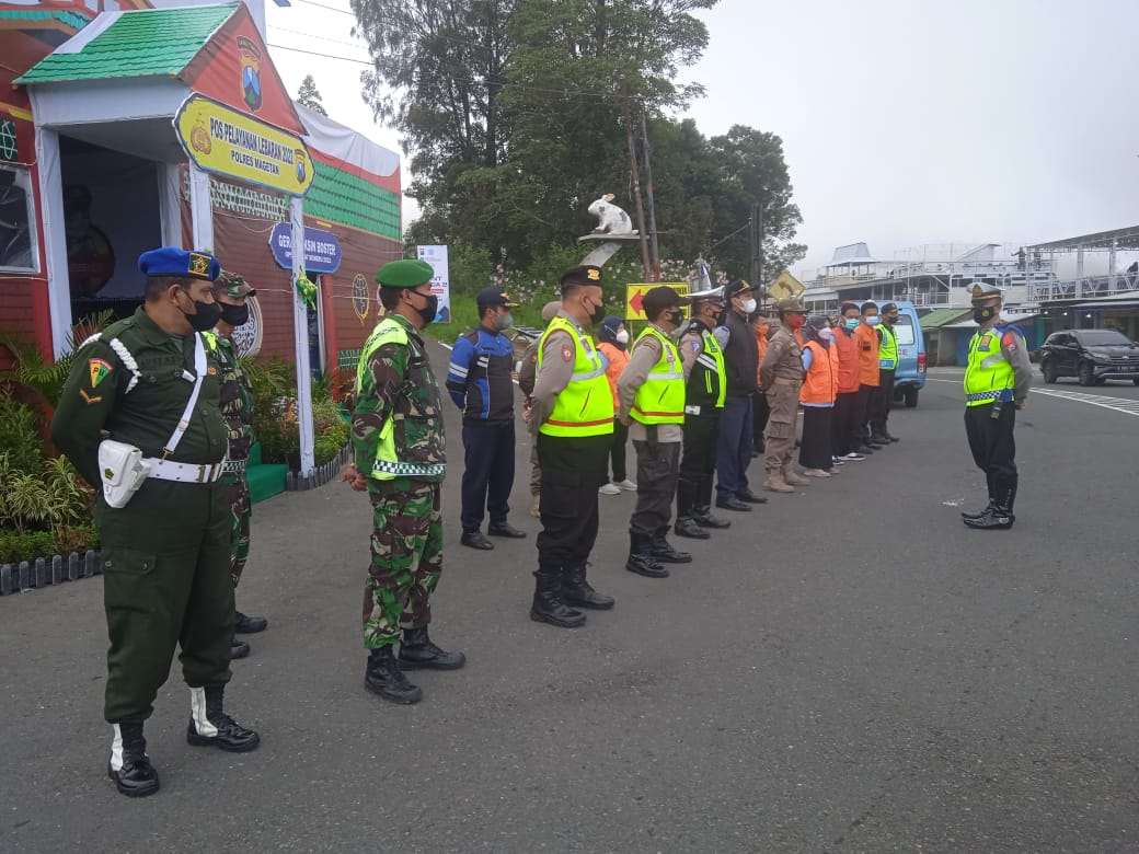 Magetan. Sejumlah personel Kodim 0804/Magetan dari Koramil 0804/02 Plaosan bersama Polres Magetan, Dishub Magetan, BPBD, Satpol PP dan petugas kesehatan melaksanakan pengamanan selama libur hari raya Idul Fitri 1443 H/2022 M. Kamis (5/5/2021)