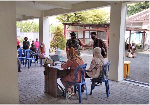 Untuk memastikan pelaksanaan vaksinasi berjalan sesuai aturan yang diterapkan dengan kesiapan tenaga kesehatan serta kedisiplinan protokol kesehatan, Babinsa koptu A. afandi koramil 0804/09 sukomoro, langsung memantau dan mengawasi tempat pelaksanaan vaksinasi 3/Booster yang telah di anjurkan pemerintah dan Kemenkes dalam rangka serbuan vaksinasi.