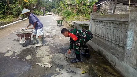 Serma Purwanto mengatakan, karya bakti perbaikan jalan desa yang dilakukan bersama masyarakat tersebut guna mempermudah akses jalan warga sehari-hari.