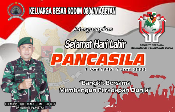 Tema peringatan Hari Lahir Pancasila tahun 2021 adalah “Bangkit Bersama Membangun Peradapan Dunia”. Upacara secara virtual peringatan hari lahir Pancasila juga diikuti oleh Koramil jajaran Kodim 0804/Magetan melalui media Elektronik.