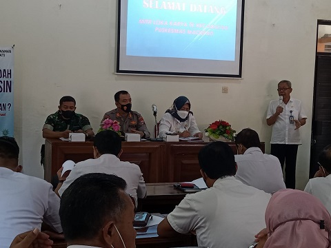 Magetan. Kapten Inf Sunaryo Danramil 06/Maospati Kodim 0804/Magetan menghadiri kegiatan acara Lokakarya Mini Lintas Sektoral (LOKMIN LINSEK) di Aula Puskesmas Maospati Kecamatan Maospati, Kabupaten Magetan. Rabu (8/6/2022)