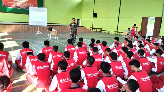 Selain mensosialisasikan kepada peserta didik untuk selalu semangat dalam belajar, Pelda Suwanto dan sertu Sugianto selaku Babinsa setempat juga turut memberikan pembekalan mengenai Wawasan Kebangsaan.
