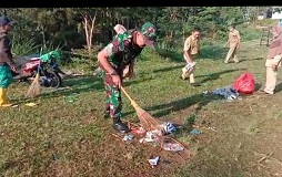 Babinsa Gelar Karya Bakti Bersihkan Lapangan Sepak Bola Abadi Praja Poncol