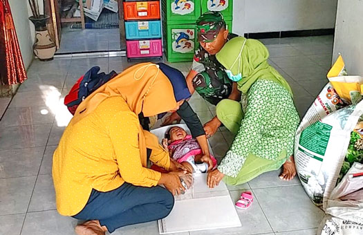 Peran Babinsa yang ada di wilayah akan selalu reaktif dan berperan secara aktif untuk bekerjasama dengan para petugas Puskesmas, Bidan dan para Kader Posyandu yang ada di wilayah.