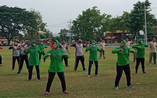Kegiatan olahraga senam bersama tersebut di gelar guna menjaga kesehatan dan kebugaran fisik seluruh anggota Koramil beserta Ibu-ibu Persit dan Lintas Sektoral di masa pandemi Covid-19 belum berakhir