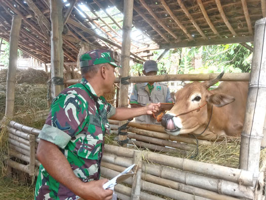 Plh Danramil 0804/11 Takeran Kapten Inf Joko Priyadi menerima laporan dari Babinsa Desa Purworejo, Sertu Nanang, jumlah hewan ternak yang telah dipasang Eartag sejumlah 220 ekor Sapi yang ada di wilayah desa Purworejo, Kecamatan Nguntoronadi, Kabupaten Magetan, pungkas Sertu Nanang.(R 11)
