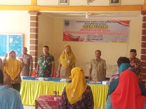Dalam kesempatan itu Danramil Tipe B 0804/13 Bendo Kapten Inf Arif Wahyu Jatmika mengucapkan selamat dan terima kasih kepada Pemdes Belotan yang telah melaksanakan penetapan perubahan APBDes Desa Belotan Tahun 2022 ini, kegiatan ini merupakan suatu rangkaian atau tahapan yang harus dilaksanakan oleh Pemdes dalam menjalankan roda pemerintahan di desa.