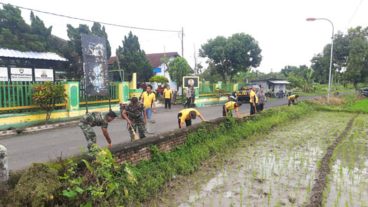 Anggota Koramil 0804/11 Takeran Bersama Warga Desa Purworejo Laksanakan Jumat Bersih Lingkungan Desa