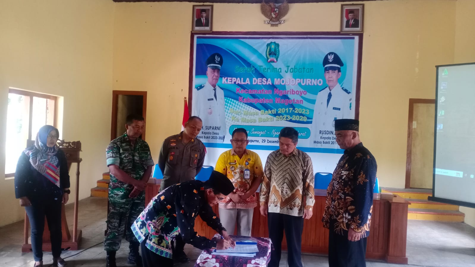 Magetan. Danposramil Ngariboyo Koramil 0804/01 Magetan Kodim 0804 Magetan Peltu Hadi Kusnomo menghadiri pelaksanaan kegiatan serah terima jabatan kepala Desa Mojopurno periode 2023-2029, Dari Bpk Risdi BA kepada Bpk H.Suparni bertempat di balai Desa Mojopurno Kecamatan Ngariboyo Kabupaten Magetan. Sabtu (30/12/2023) Acara Serah Terima Jabatan ditandai dengan penandatanganan berita acara serah terima jabatan Kepala Desa Read More