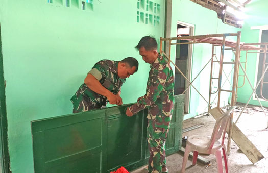 Kali ini Pelda Kadirun beserta anggota lainnya melaksanakan kegiatan perawatan dan perbaikan bangunan Makoramil dengan pembersihan makoramil dan pemasangan lampu supaya lebih terlihat rapi, bagus dan bersih.