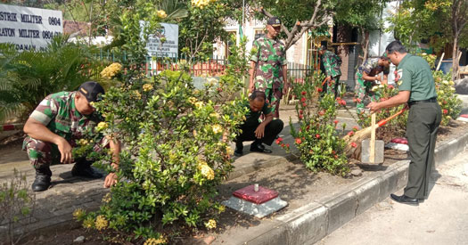 Peduli Kebersihan Pangkalan, Anggota Koramil 0804/10 Kawedanan Bersihkan Markas