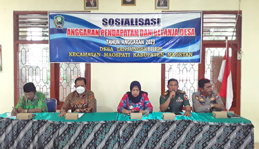 Magetan.kodim-magetan.com – Danramil 0804/06 Maospati Kapten Inf Sunaryo menghadiri acara penetapan APBDes tahun anggaran 2023, di Balai Desa Tanjungsepreh, Kecamatan Maospati, Kabupaten Magetan. Kamis(09/2/2023).