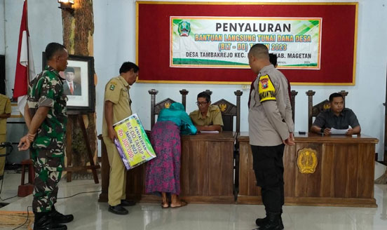 Magetan.kodim-magetan.com – Babinsa desa Tambakrejo Koramil 0804/01 Magetan jajaran Kodim 0804/Magetan Serma Puryanto melaksanakan pemantauan dan pengamanan kegiatan penyaluran BLT DD tahap 5 bulan Mei di balai desa Tambakrejo kecamatan Magetan kabupaten Magetan.selasa(16-05-2023)