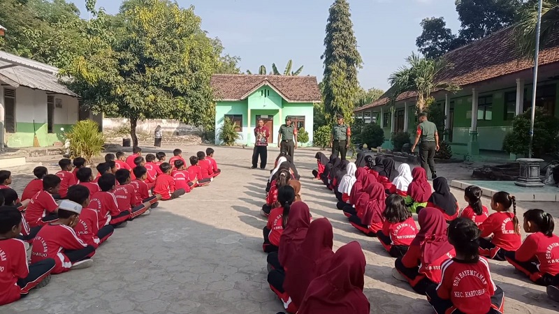 Magetan. Bertempat di SDN Bayemtaman Desa Bayemtaman Kecamatan Kartoharjo Kabupaten Magetan, Babinsa Kopka Suroto melaksanakan pelatihan PBB, Permainan Outbound dan pemberian materi Wawasan Kebangsaan. Rabu, (14 Juni 2023)
