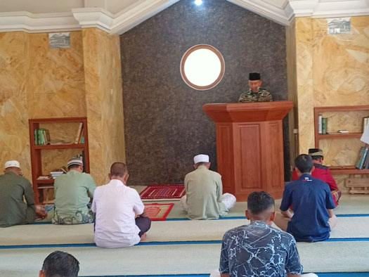 Dalam isi khutbahnya Sertu H.M. Tasir SH menyampaikan, Shalat lima waktu merupakan ibadah yang sangat istimewa, keistimewaannya bukan saja Nabi Muhammad SAW menerima kewajiban tersebut langsung menghadap Allah SWT di Sidratil Muntaha tetapi shalat merupakan satu satunya kewajiban yang tidak boleh ditinggalkan. Berbeda dengan puasa Ramadhan, ketika sedang bepergian atau dalam keadaan sakit atau udzur karena usia sangat lanjut, maka kita boleh tidak melaksanakannya dan diganti di hari lain, atau dengan membayar fidyah, ungkapnya.