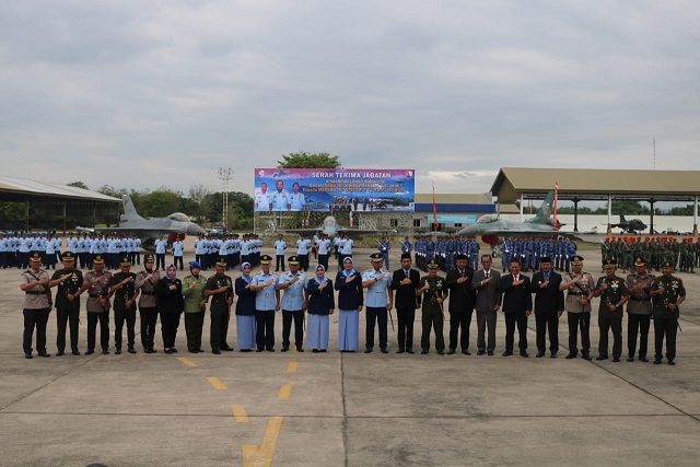 Magetan. Dandim 0804/Magetan Letkol Inf Dani Indrajaya, S.I.P., menghadiri serah terima jabatan (sertijab) Komandan Lanud Iswahjudi dari Marsma TNI Irwan Pramuda, SE. MM., kepada Marsma TNI Wastum, SE. M.MP. MS (NSSS). Sertijab dipimpin Panglima Komando Operasi Udara (Pangkoopsud) II Marsda TNI Andi Kustoro di Skadron Udara 15 Lanud Iswahjudi, Magetan, Rabu (7/6/2023).