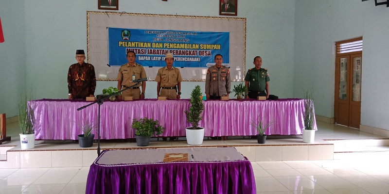 Magetan. Bertempat di Balai desa Jonggrang, Kec. Barat Kab. Magetan, Danramil 0804/ 08 Barat Kodim 0804/Magetan Kapten Arm Agus Hariyono bersama Babinsa menghadiri undangan Pelantikan Perangkat Desa Jonggrang dengan metode mutasi jabatan Bapak Latif dari Kaur Kesejahteraan menjadi Kaur Perencanaan, Selasa (13/06/2023)