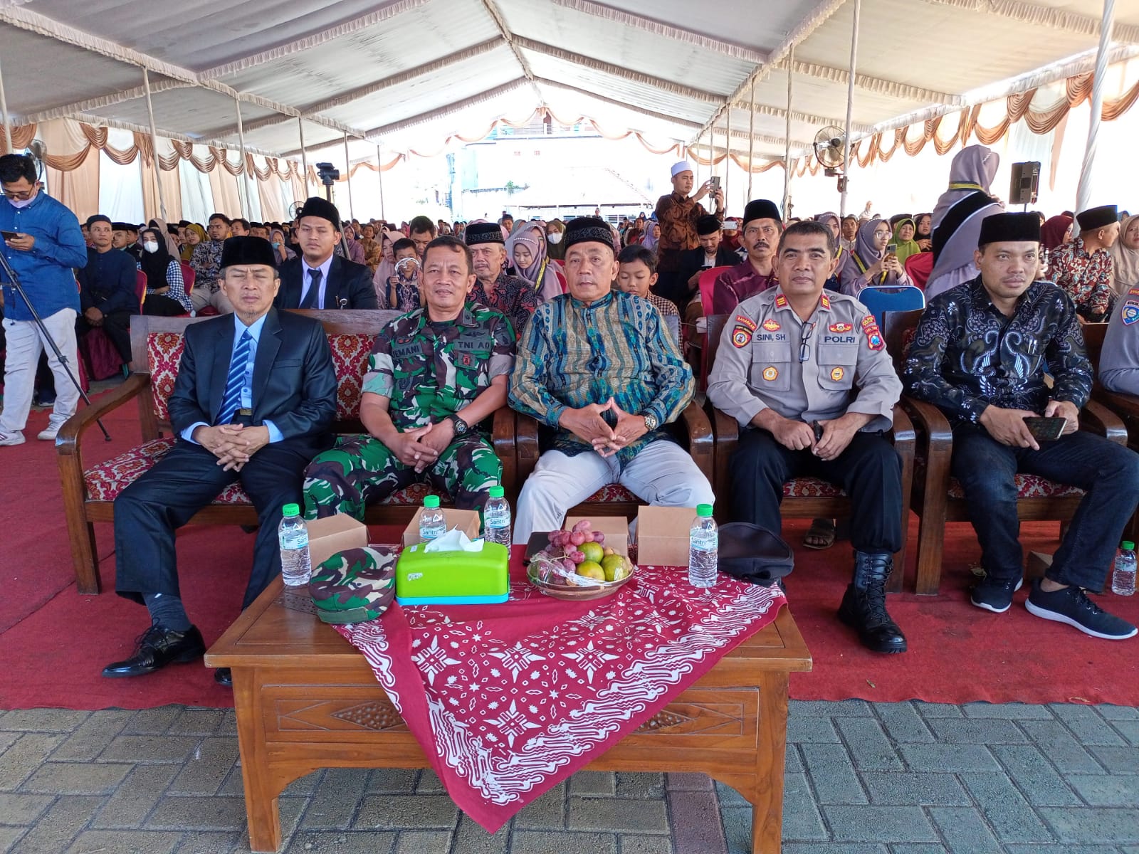 Magetan. Komandan Koramil 0804/01 Magetan bersama Forkopimca Magetan menghadiri pelaksanaan kegiatan Haflah Akhirussanah Santri SMPIT yang ke 6 dan MAIT yang ke 2 pondok pesantren Baitul Quran Al Jahra Magetan Tahun Pelajaran 2022/2023 dihadiri sekitar 500 orang bertempat di komplek Pondok Pesantren Baitul Quran Al Jahra Magetan jln Raya Panekan – Magetan kelurahan Tawanganom kecamatan Magetan kabupaten Magetan.