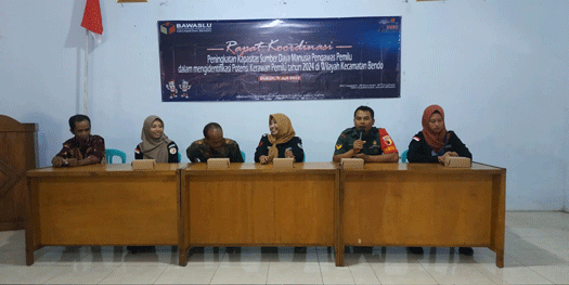 Ketua Panwascam Bendo ibu Ernita menyampaikan rapat koordinasi digelar dalam rangka persiapan pemilihan umum (Pemilu) di Tahun 2024. Anggota Panwascam harus memiliki rasa tanggung jawab sebagai pengawas Pemilu di wilayah masing2, yang selalu siap dan amanah dalam menyukseskan Pemilu yang akan datang dan dapat bekerja sama dan berkoordinasi dengan pihak-pihak terkait untuk mengawasi Pemilu agar berjalan dengan baik dan lancar.