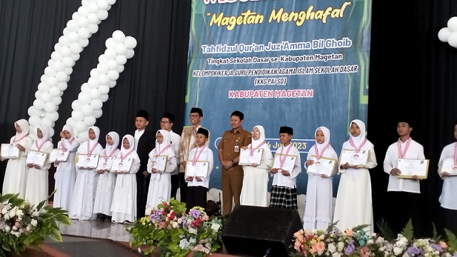 Kegiatan Wisuda Akbar “Magetan Menghafal” Tahfidzul Qur’an Jus ‘Amma Bil Ghoib tingkat sekolah dasar se-Kabupaten Magetan, dengan jumlah 400 siswa-siswi dan penanggung jawab Tafsirul Anam, M.Pd. (Ketua KKG PAI SD Kab. Magetan) tersebut dihadiri oleh Dr. Drs. Suprawoto, SH, M.Si (Bupati Magetan), Drs. Suwata, M.Si. (Kepala dinas pendidikan kepemudaan dan olahraga kab. Magetan), Dr. H. Taufikurrahman, M.Ag. (Kepala kantor kementerian agama kab. Magetan), Camat Magetan. Bpk Yudho Wahyono, S.Sos, M.M, Kapten Arm Khoirudin (Komandan Koramil 0804/01 Magetan), Iptu Taufik, S.Sos (Kanit Binmas) mewakili Kapolsek Magetan, Tafsirul Anam, M.Pd. (Ketua KKG PAI SD Kab. Magetan), Koptu Dwi Santoso (Babinsa kelurahan Tambran), Bapak dan Ibu Guru pengawas PAI dan SD Kab. Magetan, Siswa-siswi SD se-kabupaten Magetan, Unsur PAM (Polsek, Dishub, Satpol PP Kab. Magetan).