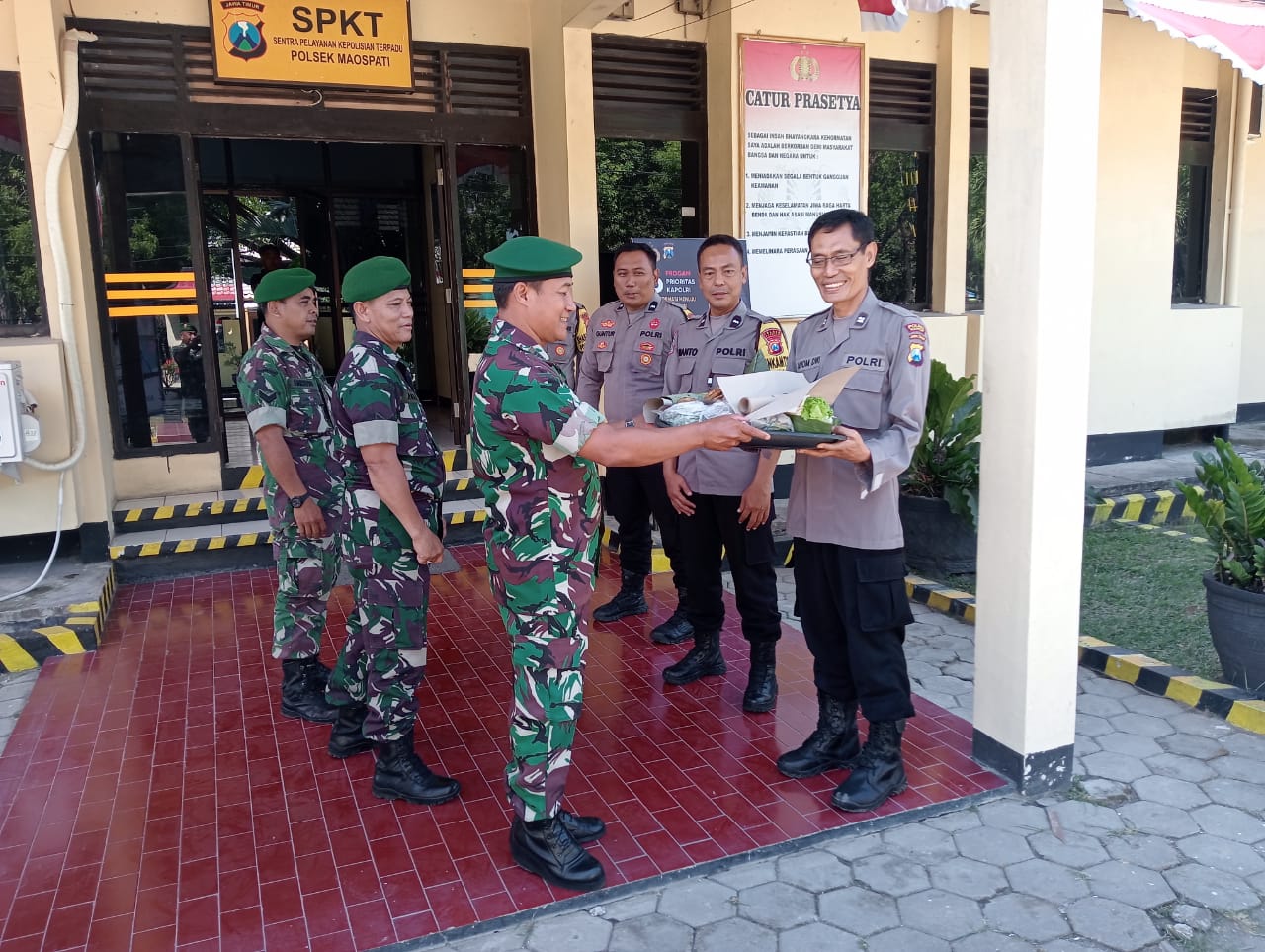 Sementara itu anggota Polsek Maospati sangat mengapresiasi atas Ucapan Danramil beserta anggota terhadap POLRI, Terima kasih atas perhatian dan supportnya untuk Kepolisian Republik Indonesia.”Tutup Peltu Sugianto.
