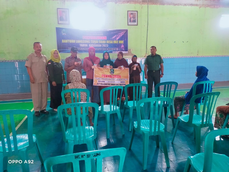 BLT DD merupakan bantuan dari Pemerintah kepada keluarga miskin atau tidak mampu di desa, untuk mengurangi dampak ekonomi. Pada penyaluran bantuan langsung tunai di Desa Manjung Kecamatan Barat, dihadiri oleh Ketua BPD bpk Windu wicaksono, Babinsa Desa Manjung, Pendamping Desa dan para perangkat desa.