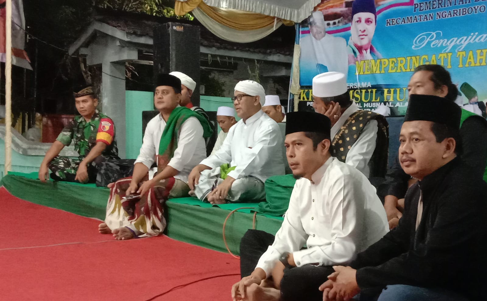 Magetan. – Babinsa desa Ngariboyo Posramil Ngariboyo Koramil Tipe B 0804/01 Magetan Kodim 0804 Magetan menghadiri pelaksanaan kegiatan pengajian umum memperingati hari besar Islam 1445 H dengan Penceramah K.H Syamsul Huda Pengasuh Ponpes Al Husna Al Alawy Senori Tuban di iringi penari Sufi Nusantara yg di hadiri sekitar -+ 300 orang.bertempat di Halaman balai Desa Ngariboyo Kecamatan Ngariboyo Kabupaten Magetan. Minggu Malam (13-8-2023)