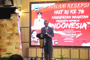 Disela-sela acara malam resepsi kenegaraan, Dandim 0804/Magetan Letkol Inf Dani Indrajaya, S.I.P., menyampaikan, malam ini merupakan puncak perayaan HUT kemerdekaan RI ke-78.
