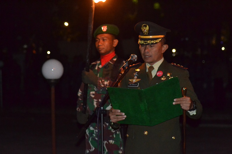 Magetan. Komandan Kodim (Dandim) 0804/Magetan Letkol Inf Dani Indrajaya, S.I.P., memimpin apel kehormatan dan renungan suci di Taman Makam Pahlawan (TMP) Yudonegoro, Magetan. Rabu Malam (16/8/2023) dini hari.