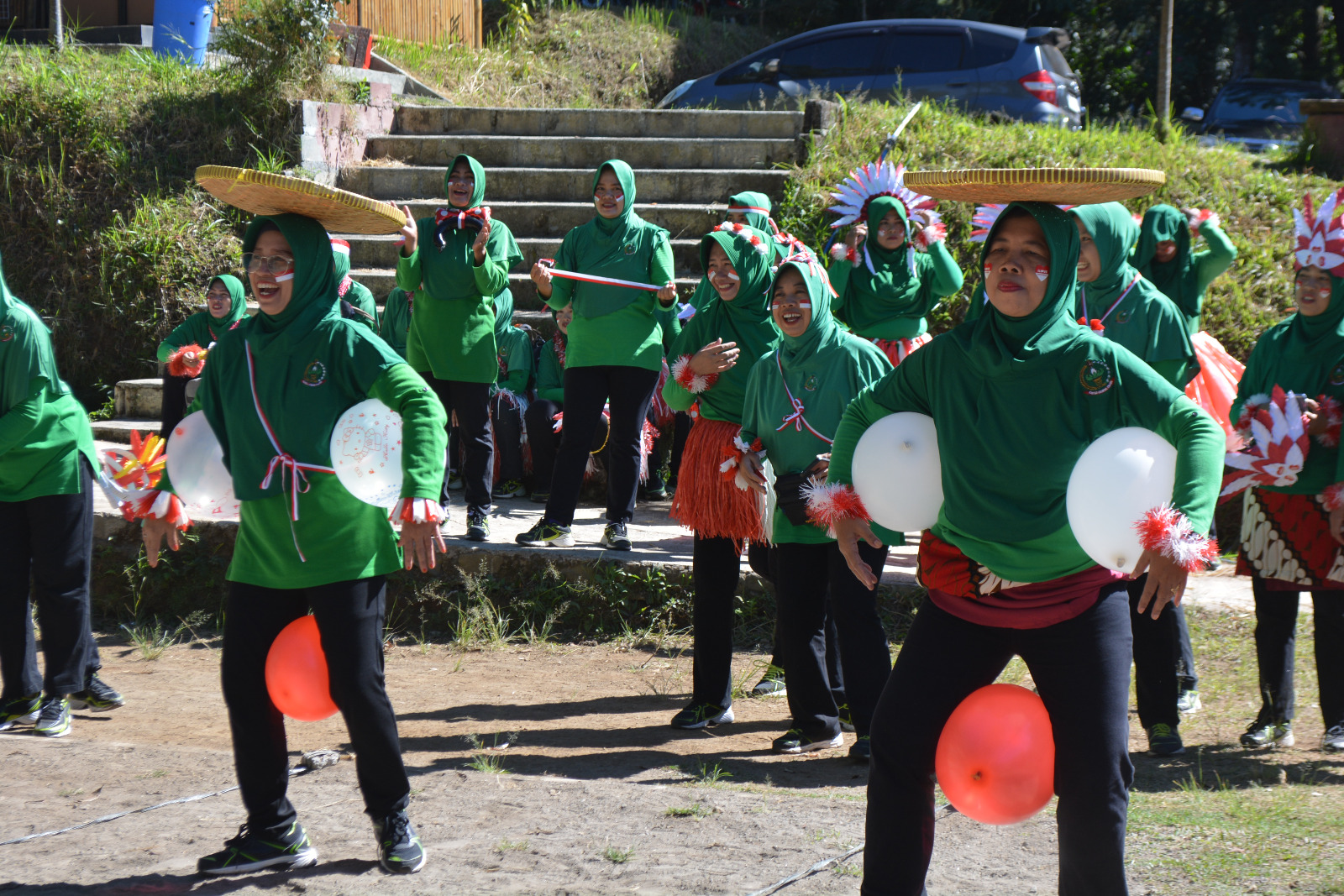 Setelah melaksanakan bakti sosial pembagian sembako, terlihat semangat ibu-ibu Persit mengikuti senam dan outbond Family gathering mulai dari lomba balap karung, balap bawa tampah diatas keatas kepala, bakiak dan tepung estafet berkelompok, yang diikuti oleh riuhnya tawa para penonton dan supporter dari masing-masing ranting jajaran.