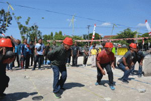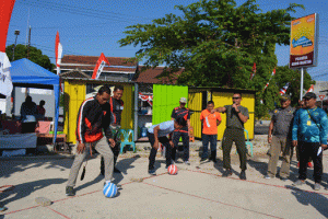 Terlihat para peserta lomba dari TNI, anak-anak dan masyarakat sangat antusias mengikuti perlombaan mulai dari pukul bola plastik pakai terong, makan krupuk, pukul kantong plastik air, bawa kelereng pakai sendok, memasukan paku ke dalam botol, gendong bakul, estapet balap sarung dan cantol ceting.