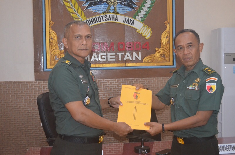 Dandim 0804/Magetan Letkol Inf Dani Indrajaya, S.I.P., menyampaikan selamat datang kepada Tim Current Audit Itdam V/Brawijaya atas kunjungannya di Kodim 0804/Magetan.