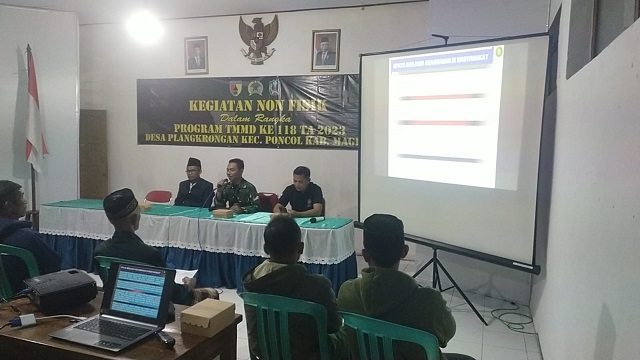Magetan, Dalam Rangka menanamkan rasa cinta tanah air, Satgas TMMD ke-118 Koidm 0804/Magetan lakukan penyuluhan wawasan kebangsaan kepada warga masyarakat desa Plangkrongan Kecamatan Poncol Kabupaten magetan Jatim. Sabtu Malam (23/2023).