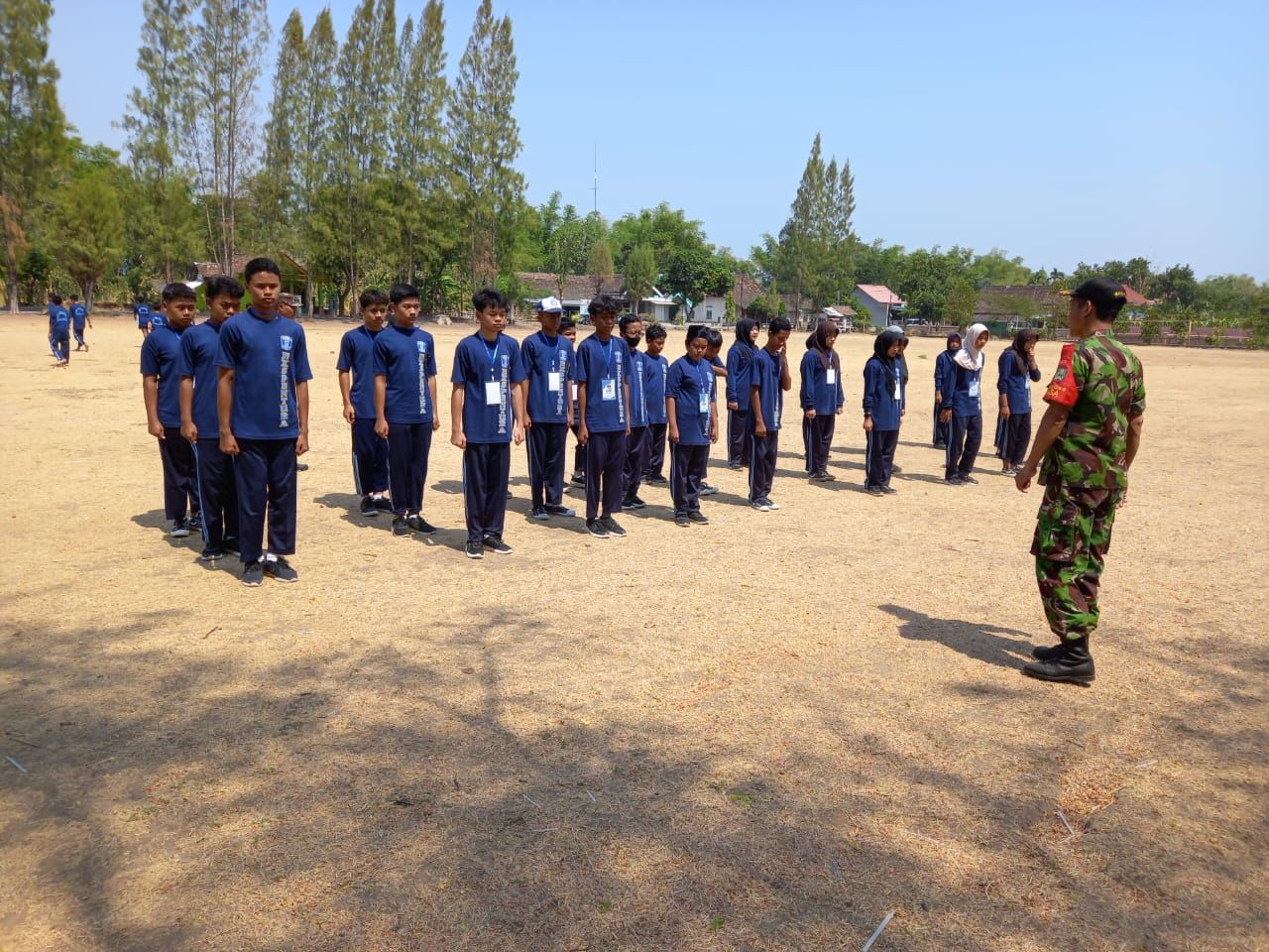 BENTUK DISIPLIN,BABINSA KORAMIL 0804-07/KARANGREJO SERMA SUPRIONO LATIH BARIS-BERBARIS KETUA DAN PENGURUS OSIS BARU SISWA SMP 1 KARANGREJO