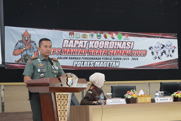 Hal senada juga disampaikan Dandim 0804 Magetan Letkol Inf Dani Indrajaya, S.I.P., bahwa kegiatan rapat koordinasi ini adalah dalam rangka menyamakan persepsi, bekerjasama mengamankan pemilu di Kabupaten Magetan ini.