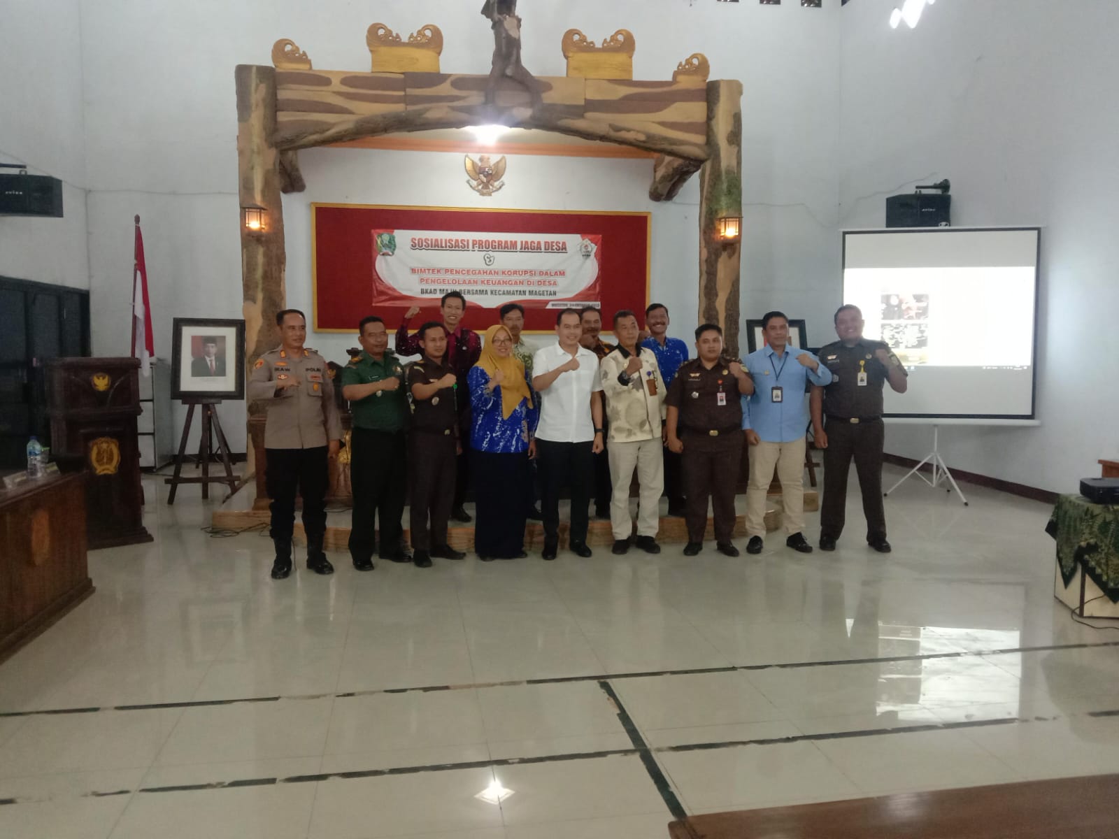 Hadir dalam kegiatan Sosialisasi Progam Jaga Desa dan BIMTEK Pencegahan Tindak Korupsi Dalam Pengelolaan Keuangan Desa yang dihadiri Seluruh Kepala Desa, Perangkat Desa dan BPD Sekecamatan Magetan tersebut diantaranya Kasi Intel Kejari Magetan Much Andi Sofyan, S.H ,Kasi Pidum Kejari Magetan Amir Nurahman, SH, M.Hum ,Kasi Datun Kejari Magetan Adi Nugraha, S.H, M.Hum ,Kasi Pidsus Kejari Magetan Fajar Nuhesdi, S.H ,Kasi BB Kejari Magetan Anggih Romandhon, S.H ,Camat Magetan Yudo Wahyono, S.Sos, M.Si , ,Danramil 0804/01 Magetan Kapten Arm Khoirudin ,Kapolsek Magetan Akp Ika Wardani, S.H ,Sekcam Magetan Wiwik Sumaryati, S.T, M.M ,Kepala Desa Tambakrejo Bpk Widji, Babinsa Desa Tambakrejo Serma Puryanto,Bhabinkamtibmas Desa Tambakrejo Bripka Burhan Aziz,Kepala Desa Sekecamatan Magetan,Perangkat Desa Sekecamatan Magetan,Ketua DPD Sekecamatan Magetan.