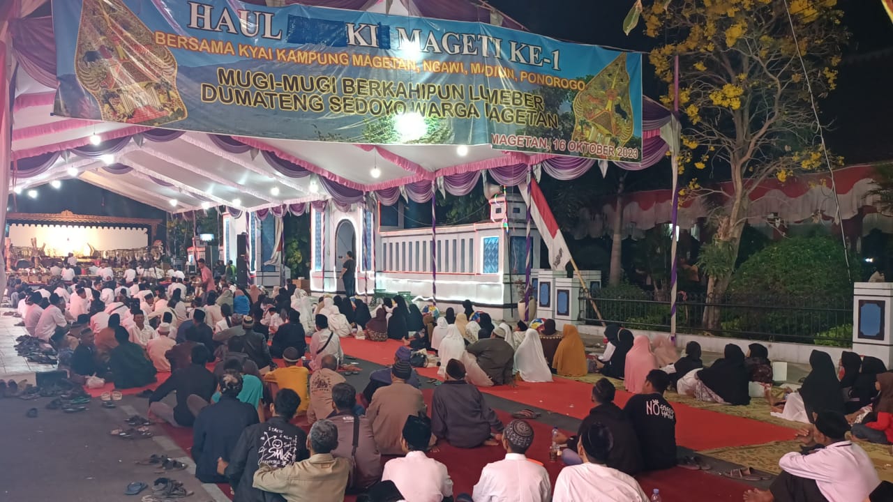 Pegelaran Wayang Kulit dengan Lakon “SEMAR MBANGUN KHAYANGAN” dalam rangka memperingati Haul Syekh Mageti ke-1 Kab. Magetan tersebut dihadiri oleh Ir. Hergunadi, M.T (Pj. Bupati Magetan), Kyai Ahmad Rusyandi, Jajaran Asisten dan Staf Ahli Kab. Magetan, Kepala OPD terkait Kab. Magetan, Yudho Wahyono, S.Sos, M.M. (Camat Magetan), Kapten Arm Khoirudin (Danramil 0804/01 Magetan), AKP Ika Wardani, SH (Kapolsek Magetan), Babinsa dan Bhabinkamtibmas Kel. Magetan, Tokoh Agama dan Tokoh Masyarakat Kab. Magetan, Warga Kab. Magetan.