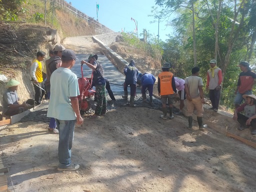 Magetan, Demi mensukseskan TNI Manunggal Membangun Desa (TMMD) Reguler ke-118 Kodim 0804/Magetan , Anggota Satgas TMMD bersama Warga masyarakat tetap melakukan pekerjaan di bawah teriknya panas di Desa Plangkrongan Kecamatan Poncol , Kabupaten Magetan Jatim . Minggu (01/10/2023).