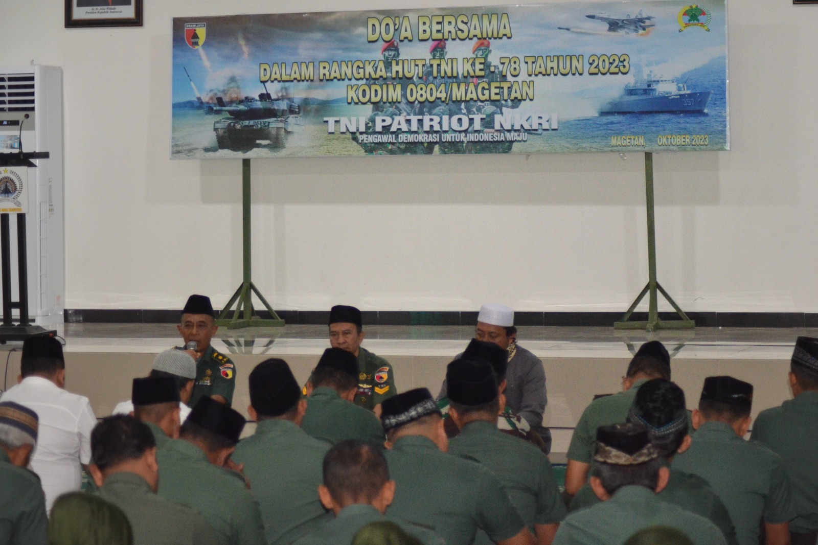 Kasdim 0804/Magetan Mayor Kav Nanang Choirudin, menyampaikan melalui doa ini diharapkan para Prajurit TNI AD khususnya Kodim 0804/Magetan yang merupakan para patriot pembela bangsa lebih menjaga kasih sayang, semangat, serta persatuan dan kesatuan dalam menjaga keutuhan NKRI, agar senantiasa dapat diberikan perlindungan, kesehatan dan kesuksesan dalam menjalankan tugas serta dijauhkan dari segala musibah dan bencana.