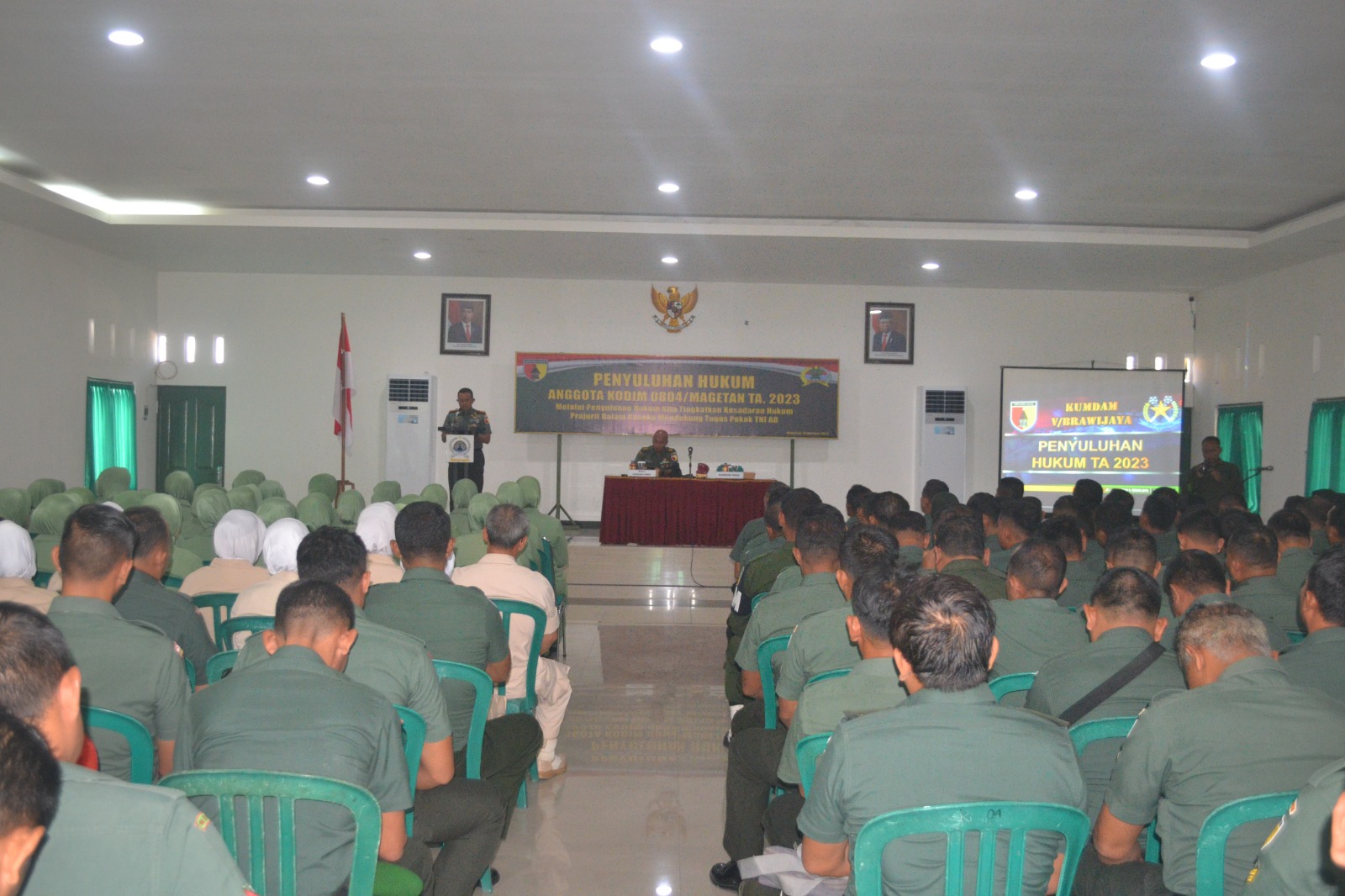 Dalam sambutannya Dandim 0804/Magetan Letkol Inf Dani Indrajaya, S.I.P., menyampaikan bahwa penyuluhan hukum merupakan salah satu bentuk pembinaan personel di bidang hukum.