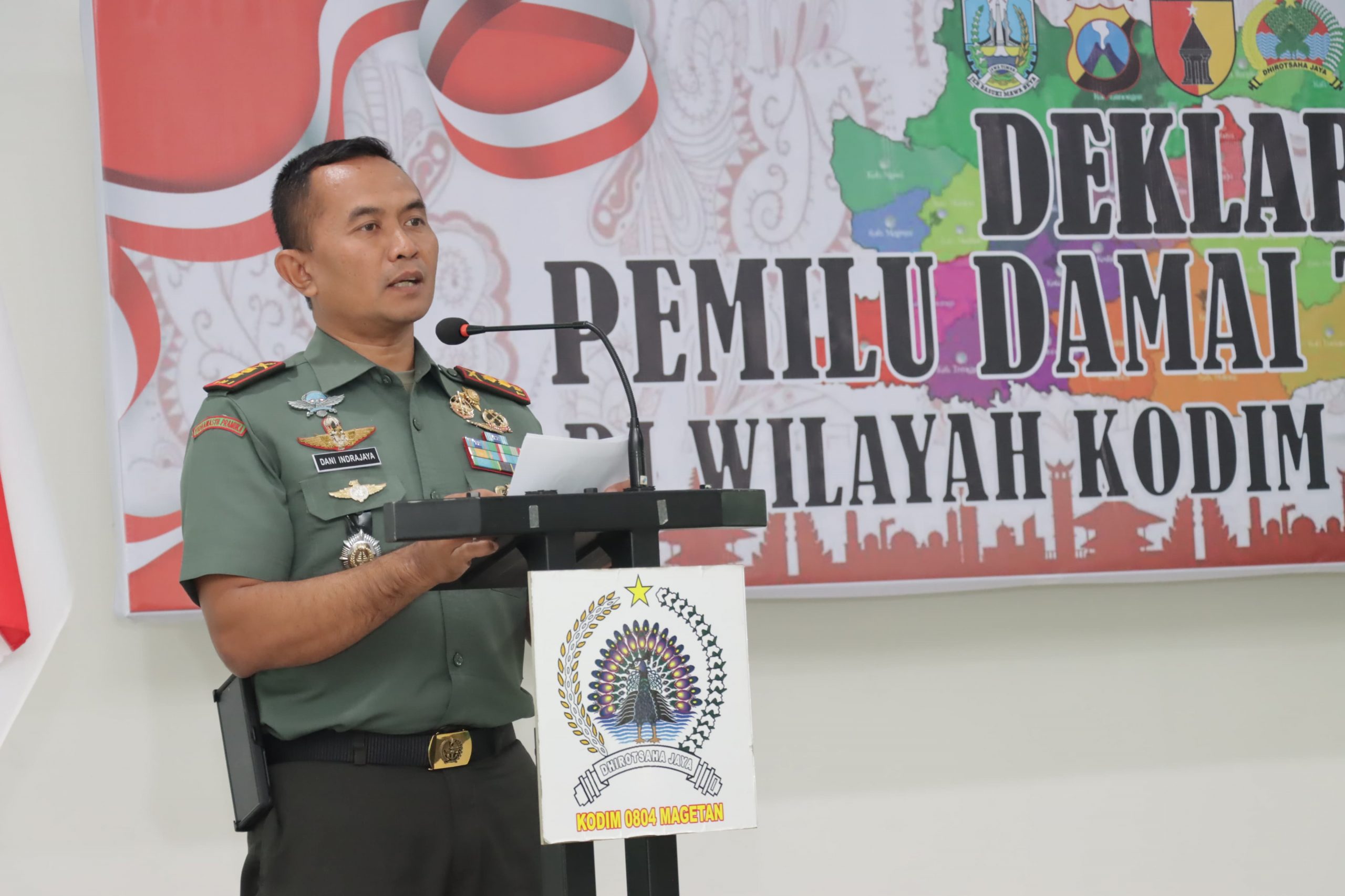 Komandan Kodim 0804/Magetan Letkol Inf Dani Indrajaya, S.I.P., dalam sambutannya mengatakan tujuan dari dilakukannya Deklarasi Pemilu Damai ini, Selain menyukseskan Pemilu Serentak, juga menciptakan adanya Pemilu yang berintegritas serta menciptakan situasi aman, damai dan kondusif di wilayah Kabupaten Magetan.