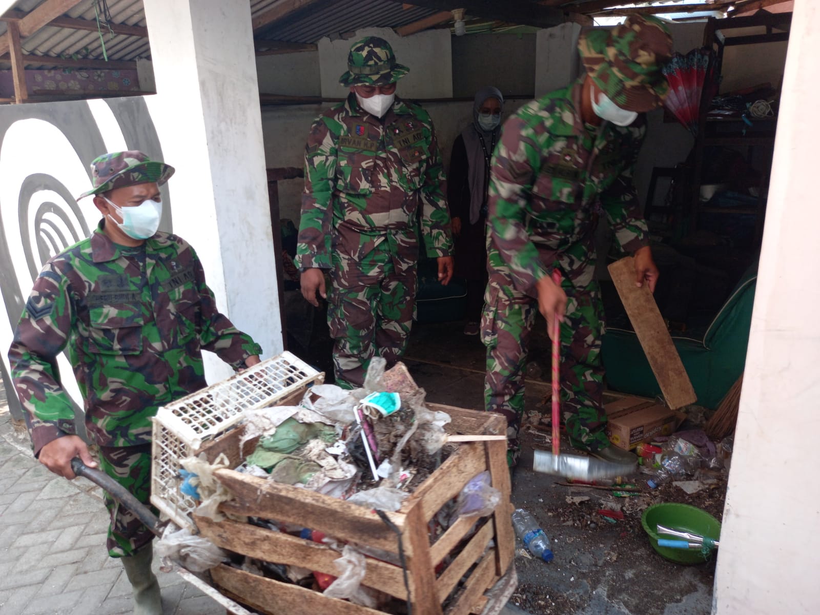 Anggota Koramil 0804/01 Magetan bersama warga setempat gotong royong untuk memperbaiki rumah yang berada di jalan Pahlawan RT 3 RW 1 kelurahan Tambran tersebut.