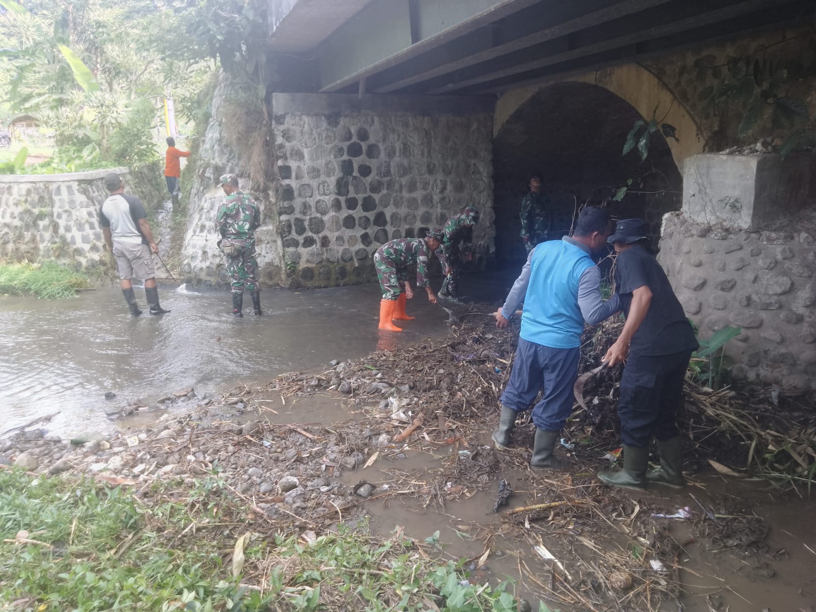 Kegiatan pembersihan sungai dalam rangka mengantisipasi bencana banjir di Kec Plaosan, kab.Magetan di hadiri Oleh Anggota Koramil Tipe B 0804/02 Plaosan, Kepala Desa Randugede, Perangkat desa Randugede beserta Warga Desa Randugede.
