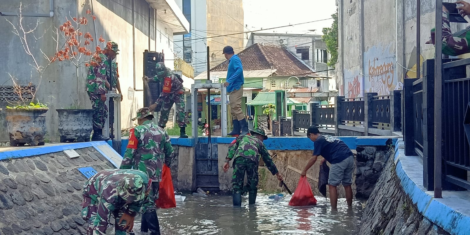 Pembagian tugas Pembersihan sepanjang sungai dari jalan Bali sampai jalan Bangka dilaksanakan team 1 terdiri dari Anggota Koramil Tipe B 0804/01 Magetan, perangkat kelurahan Kepolorejo dan warga. Untuk pembersihan sepanjang sungai dari jalan Bali sampai jalan Yos Sudarso dilaksanakan team 2 terdiri dari Anggota Koramil Tipe B 0804/01 Magetan, perangkat kelurahan Kebonagung dan warga.