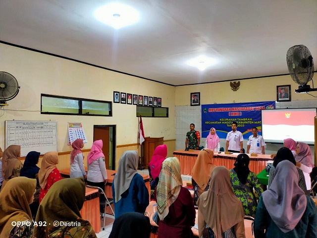 Magetan.- Babinsa Kelurahan Tambran Koramil 0804/01 Magetan Kodim Magetan Serda Gus Anwar melaksanakan kegiatan Rapat Koordinasi Musyawarah Masyarakat Desa (MMD) Kel Tambran bertempat di balai pertemuan Kelurahan Tambran Kecamatan Magetan Kabupaten Magetan. Kamis (7/12/2023)