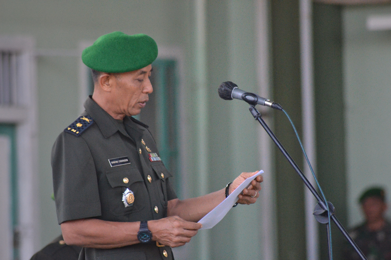 Kepala Staf Kodim 0804/Magetan Mayor Kav Nanang Choirudin selaku Inspektur upacara membacakan amanat dari Kepala Staf Angkatan Darat Jendral TNI Maruli Simanjuntak, M.Sc.